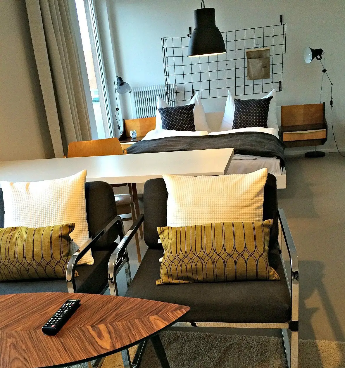 Budget Hotel Vienna. The 78 hotel rooms – each different and with its own style – follow the same concept of design-led upcycling: A vintage sofa dressed in fresh graphic prints, three old suitcases piling up as a night table, a gorgeous 1950s side cabinet a savvy art dealer would give his right arm for, and lots of inspiring art. In some rooms an old luggage racks from the Austrian Railways now provide space for clothes.
