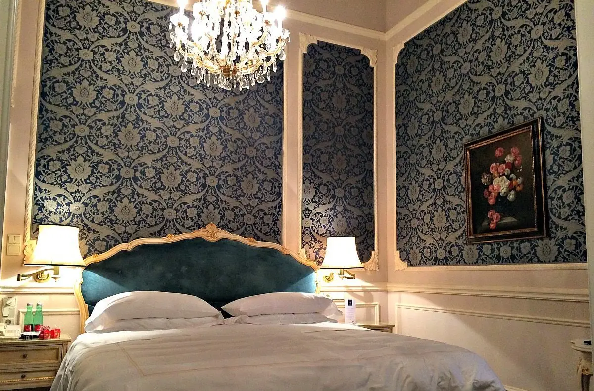 Hotel Imperial Vienna. If you had grown up in Vienna, my room would have made you feel equally nostalgic. More than anything, it brought back those Austrian soap operas from the 1940s: Where on Saturday afternoon Empress Maria Theresia would ponder about the Empire’s fate. When Empress Sissi would indulge in candied violets and the Congress of Vienna waltzed away. Since Viennese feel nostalgic at the Imperial it’s because this site displays an authentic setting: the blue silk wall paper, the rich stucco ceilings, the upholstered Empire-style chairs, the romantic flower paintings. As a 5-star hotel would require, my bed was immaculate. In fact, elegance is often uncomfortable, though that was not the case. Where on earth do I get such a heavenly mattress that is neither too soft nor too hard? Besides an exquisite bed great connectivity contributes as much to a delightful stay. Unlike with some other luxury places, Wifi was not only free throughout the hotel but worked seamlessly. In the marble bathroom the heated floor felt magic.