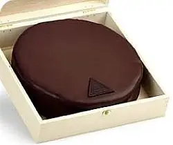 The Sacher Cake is quite simply a chocolate cake with a thin layer of apricot jam in the middle and another on top. It is coated with a thin layer of chocolate icing. To avoid mix ups, the Original Sacher cake is decorated with the official Sacher chocolate seal. The ingredients are simple. The way to achieve the perfect mix of chocolate, flour, butter, sugar and eggs, and especially the glassy chocolate icing is not.